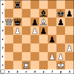 16.h3 Qc7 17.c3 Nd7 18.a5 f5 19.Ra4 f4 20.Bb6 Nxb6 21.axb6 Qd8 22.Bg4 Rc5 23.Be6+ Kh8 24.c4 Rf6 25.Qc3 Qxb6 26.Rb4 Qc7 27.Qb3 b5 28.cxb5 axb5 29.Rxb5 Rxb5 30.Qxb5 Rf8 31.Qc6 Qa7 32.b4 g6